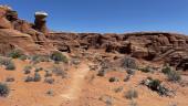 The Parks Trail crosses the usual variety of surfaces such as dirt, sand and slick rock. Washes rarely have any water in them.
