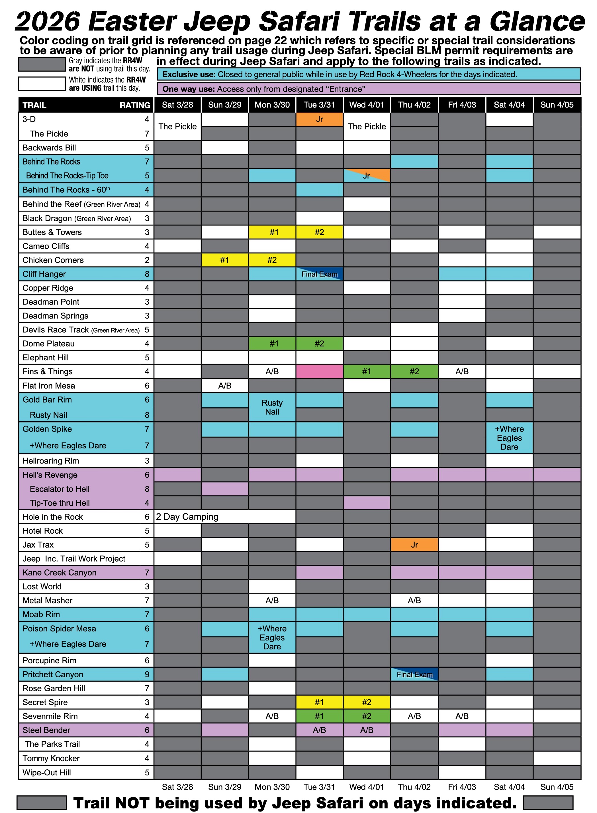 Below is a planning grid for the 2026 Easter Jeep Safari: